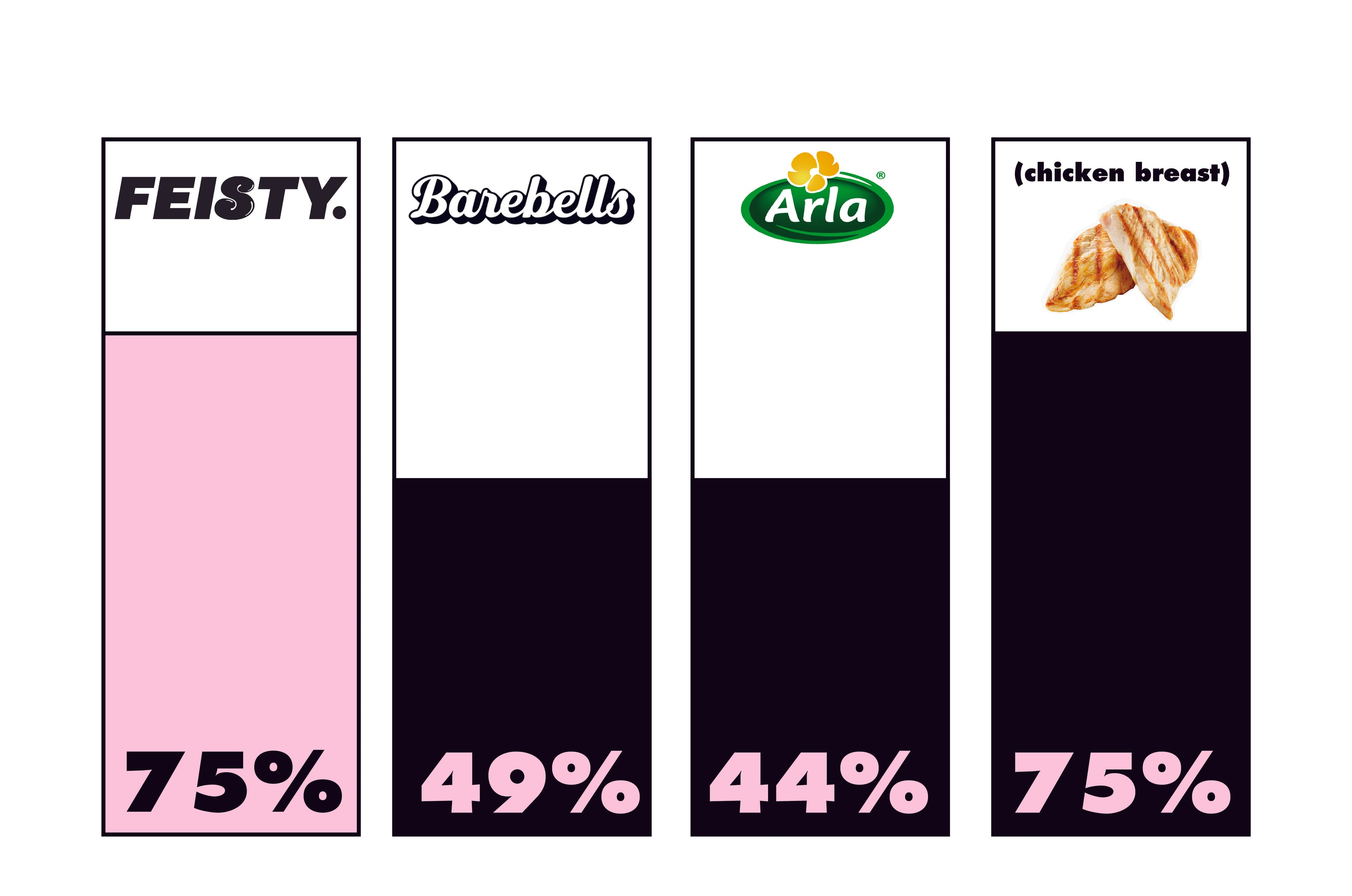 75% of Feisty's calories come from protein. That's ~50% more than most protein shakes